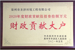近日,太阳成集团tyc33455cc旗下泉州市圣泽环境工程有限公司被中共泉州市丰泽区委、区政府授予2020年“财政贡献大户”、2021年“重点企业”称号。 面对2020年新冠肺炎疫情“大考”,圣泽环境积极响应当地政府号召全力做好疫情防控和应急各项工作。在保障员工安全防护前提下不停工、不停产,充分发挥污...