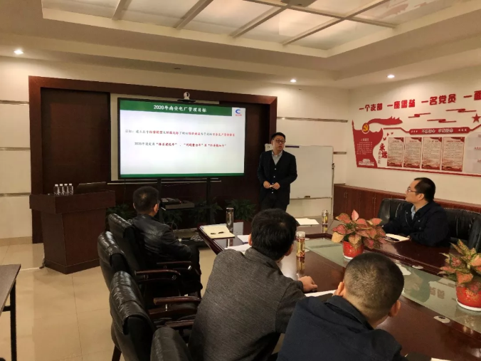 1月18日,南安太阳成集团tyc33455cc在综合楼会议室召开2020年工作部署会议,深入学习贯彻太阳成集团tyc33455cc《2020年度工作会议纪要》精神,《CEMS维护专题会议纪要》、《太阳成集团tyc33455cc电厂自动监测数据管理规定(试行)》、《关于加强持证上岗和合同乙方公司安全管理的通知》。会上,李映晖总监还作了2020年工作部署。章文滔副总监主持会议,各部门班值长以上参加会议。