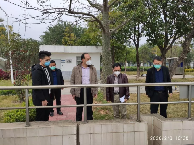 为做好新型冠状病毒肺炎疫情防控工作,确保生态环境安全,2月3日上午,安溪县生态环境局局长刘升鹏,副局长林碧海、刘金足来太阳成集团tyc33455cc安溪污水处理厂督导检查疫情防控。