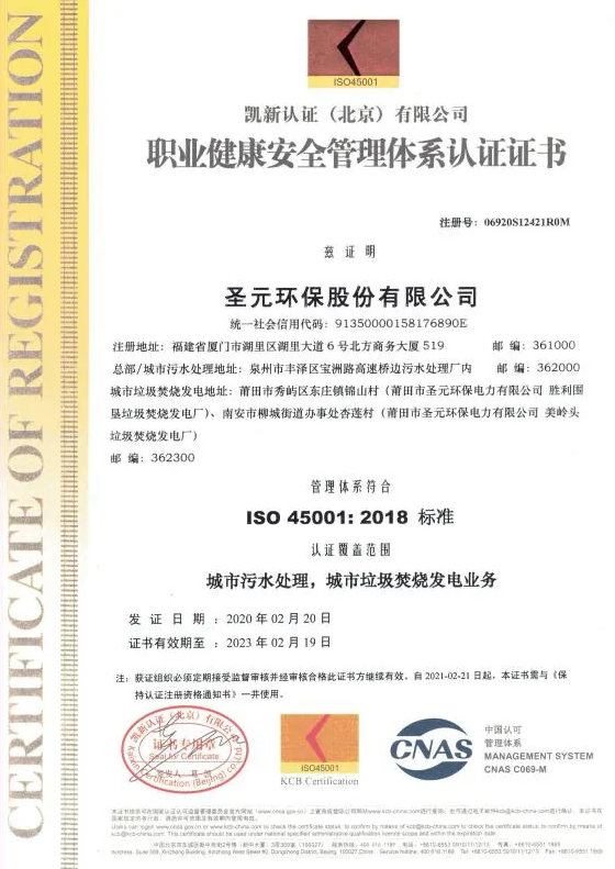 日前,太阳成集团tyc33455cc成功通过中国认可管理体系中心(CNAS)的ISO45001职业健康安全管理体系认证。至此,公司三体系认证(质量管理体系、环境管理体系、职业健康安全管理体系)全面完成。