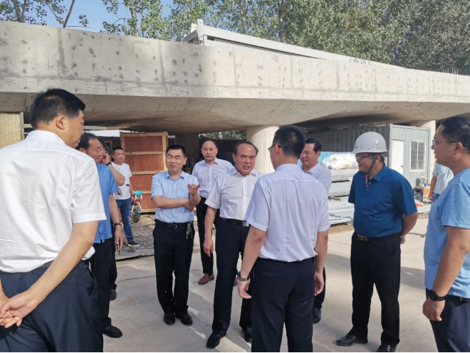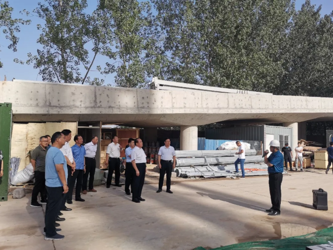 李录军总指挥就项目工程进度、人力资源投入、安全文明施工和夏季防暑措施、疫情防控等情况及项目建成后带来的社会效益、经济效益和环保效益等做了详细汇报。
