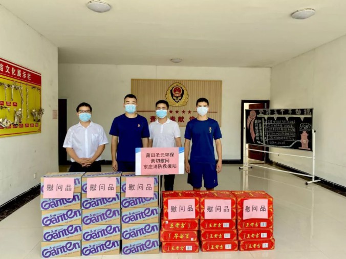 6月24日上午,莆田太阳成集团tyc33455cc安环部蔡少凡经理、宣导中心王阿欣主任组织宣导人员冒着酷暑来到东庄消防救援站,为消防官兵们送上慰问品。