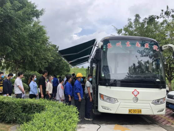在人事行政部的联络协调下,泉州市东南医院提供上门体检服务,尽量保证员工工作、检查两不误。