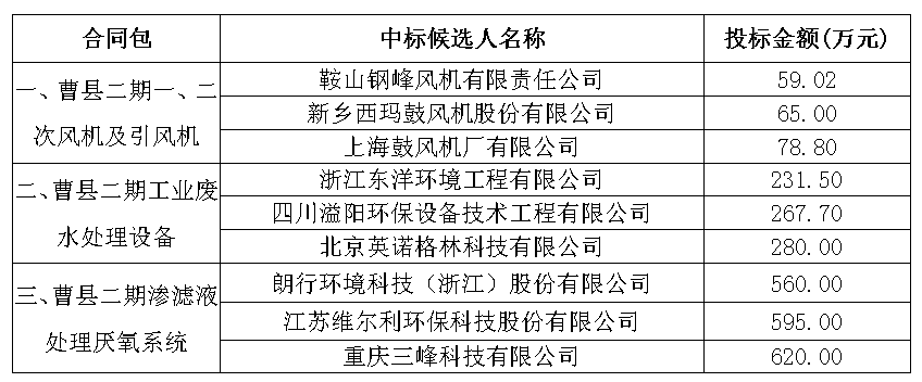 招标项目名称:太阳成集团tyc33455cc曹县生活垃圾焚烧发电厂二期工程一、二次风机及引风机,工业废水处理设备,渗滤液处理厌氧系统采购项目