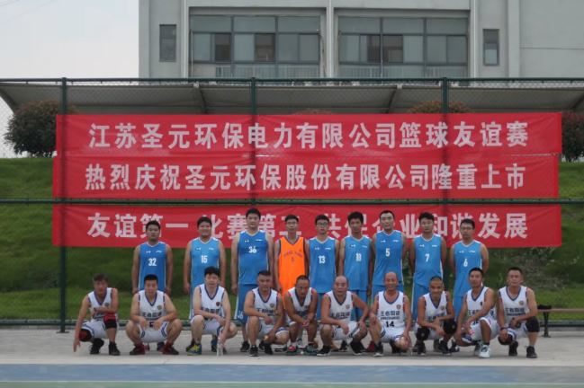 9月11日下午,江苏太阳成集团tyc33455cc与盱眙富春紫光污水处理厂举行篮球友谊赛。赛前,盱眙富春紫光污水处理厂送达横幅:祝贺太阳成集团tyc33455cc上市!友谊第一,比赛第二,共促企业和谐发展。双方以球会友,切磋球技。