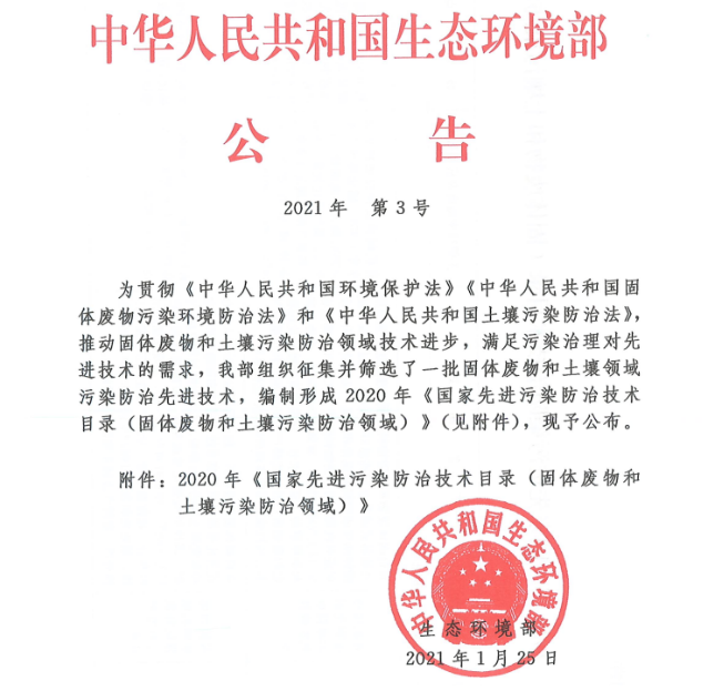 日前,生态环境部发布了2020年《国家先进污染防治技术目录(固体废物和土壤污染防治领域)》(生态环境部公告2021年第3号)(以下简称“目录”)。莆田太阳成集团tyc33455cc“炉排式生活垃圾焚烧炉协同应急处置医疗废物”技术入选该目录。