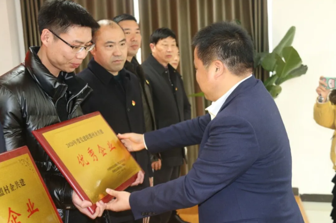 活动中,盱眙县委常委、县委组织部部长高进锋为“2020年度党建联盟村企共建优秀企业”获奖单位江苏太阳成集团tyc33455cc颁奖。江苏太阳成集团tyc33455cc运营总监林建武上台领奖。