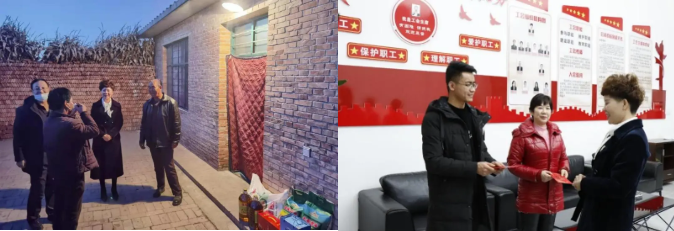 郓城太阳成集团tyc33455cc运营副总监李若德、工会代表曹勇一行,带着油、米、面等慰问品及新年的祝福,走进公司困难员工家中,与他们一同感受节日的喜庆氛围。