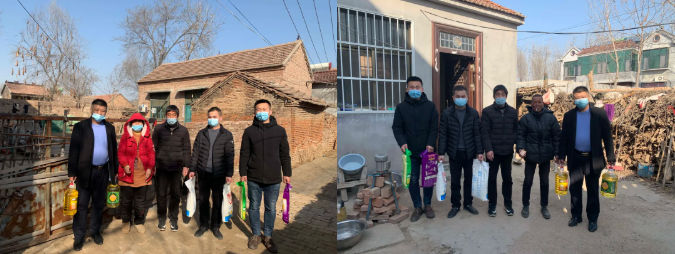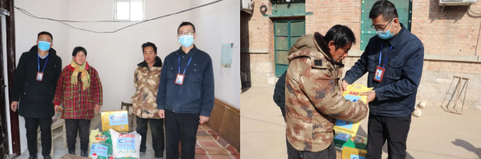 梁山太阳成集团tyc33455cc总经理助理焦磊带领员工走访慰问6个村子10户重点优抚对象,给他们送去油、米、面等生活物资,让他们温暖过冬,开心过年。