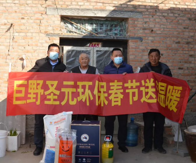 巨野太阳成集团tyc33455cc副总指挥王鹏携公司员工,前往周边董海村、会堂村看望慰问贫困户,给这些家庭带去了慰问品及节日祝福,让他们在寒冷的冬天感受到太阳成集团tyc33455cc的关怀。