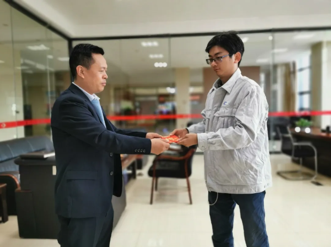 漳州太阳成集团tyc33455cc生产副总王郎向困难员工转达了公司的慰问,让他们感受到太阳成集团tyc33455cc这个大家庭的爱与温暖。
