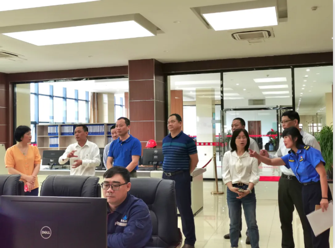 来到绿意盎然的漳州太阳成集团tyc33455cc,调研组一行观看公司宣传视频,实地察看中控室、垃圾吊控制室等区域。在参观通道近距离察看汽机运行机组时,领导们仔细询问日发电量、日进厂量和日入炉垃圾量及吨垃圾发电量等情况。调研组还听取了杨宏湘总监等相关负责人关于生产运行情况的汇报。