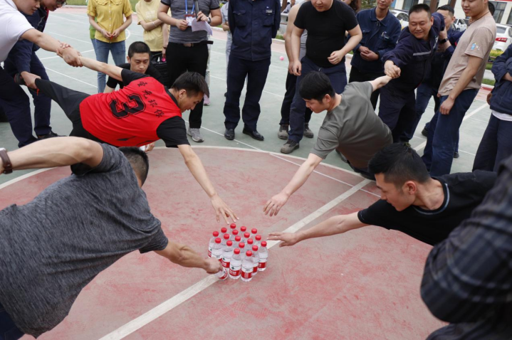 本次活动共设5个项目,分4组队伍。各组参赛人员热情高涨,各显神通,现场气氛活跃。“气球传递杯”不能用语言表达,队员们通过肢体传递着信息,考验着团队默契;“群龙取物”必须把劲使在一个人身上,考验着团队协作;“车轮滚滚”需要同心协力才能够走得更快、更远,考验着团队合作精神;“一圈到底”只能靠着对方的身体让呼啦圈传递下去,考验着队员间的信任;“五人六腿跑”中哪个队友都不能落下,考验着团队的凝聚力。比赛项目既充满趣味又发扬了团结友爱精神,大家只要相互信任,心往一处想,劲往一处使,就能取得胜利。