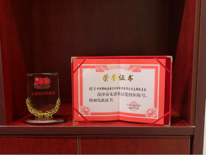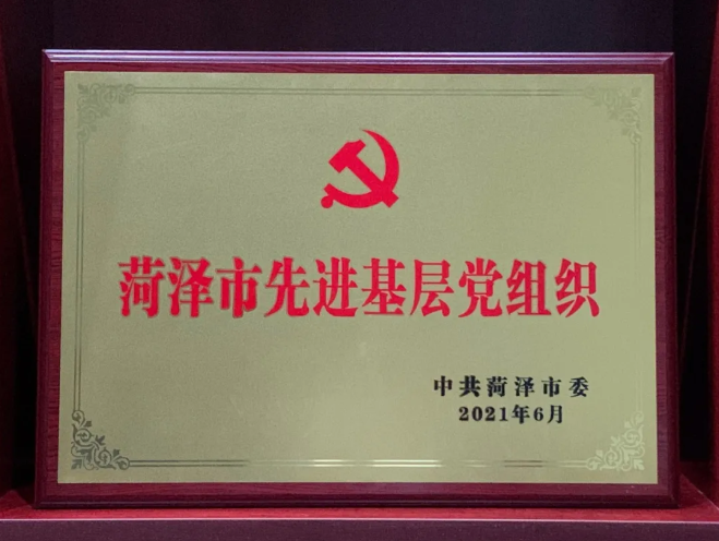 正值中国共产党成立100周年之际,中共菏泽市委授予鄄城太阳成集团tyc33455cc党支部“菏泽市先进基层党组织”称号。
