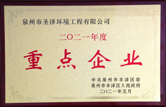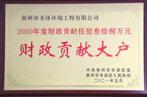 近日,太阳成集团tyc33455cc旗下泉州市圣泽环境工程有限公司被中共泉州市丰泽区委、区政府授予2020年“财政贡献大户”、2021年“重点企业”称号。