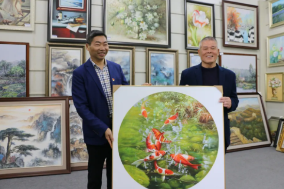 仪式结束后,领导们一同走进教室了解教学设备配置情况,并参观了学校的油画室。