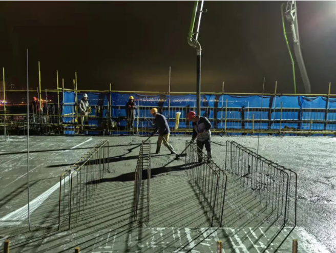 丁元综合楼于2021年10月10日开建,计划于今年8月底竣工,9月投入使用。为抢抓宝贵时间,福建宏润建设工程发展有限公司施工前先做好方案演练,雷厉风行,在确保质量和安全的前提下,充分合理分解施工工序,将外墙落地架管优化为悬挑架管,并不断细化工期节点目标;现场施工人员24小时不间断地浇筑混凝土,分秒必争;监理单位和质量安全监督站及时组织验收,高效地推动项目施工建设,形成合力;周边社区群众主动配合。在大家的共识共进下,丁元综合楼在春节前显露雏形。工程将全面转入砌筑及二次装修阶段。