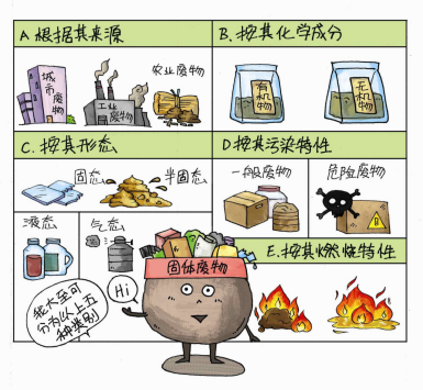 固体废物有多种分类方法,可根据其来源、组分、形态等进行划分,也可根据其危险性、燃烧特性等进行划分: