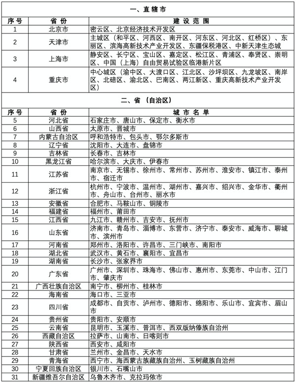 此外,雄安新区、兰州新区、光泽县、兰考县、昌江黎族自治县、大理市、神木市、博乐市等8个特殊地区参照“无废城市”建设要求一并推进。