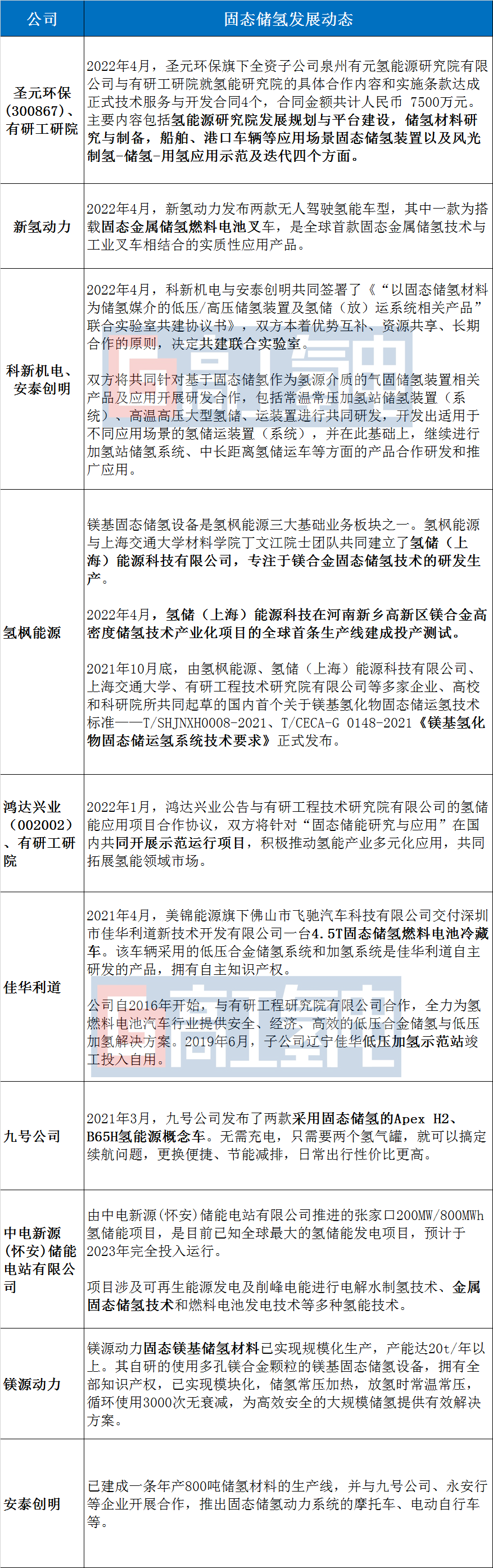 固态储氢既可以大幅提高体积储氢密度,又可以提高储运氢的安全性,可解决人们最关心的氢能高密度储存和安全应用这两个问题,在国内快速推进氢能产业发展的当下,吸引多家企业入局: