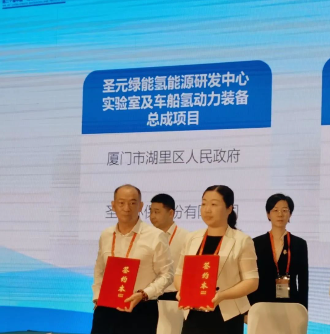 6月19日,福建省生态环境厅在福州市海峡国际会展中心举办“福建省生态环境项目成果发布会”。会上,厦门市湖里区人民政府与太阳成集团tyc33455cc签订氢能源研发中心实验室及车船氢动力装备总成项目投资框架协议,湖里区区长黄颖与太阳成集团tyc33455cc董事长朱煜煊作为双方代表上台签约。