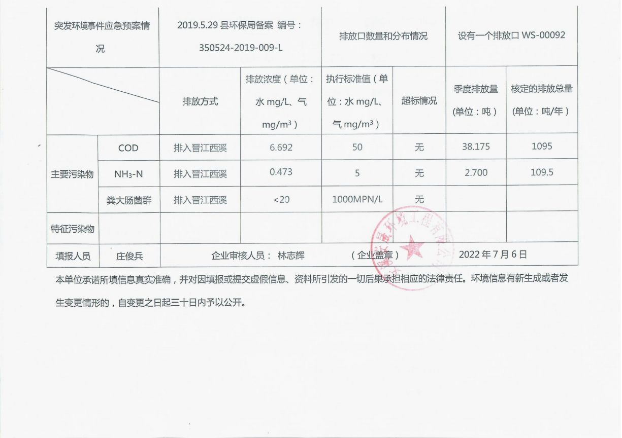 安溪城市污水处理厂2022年第2季度环境信息公开