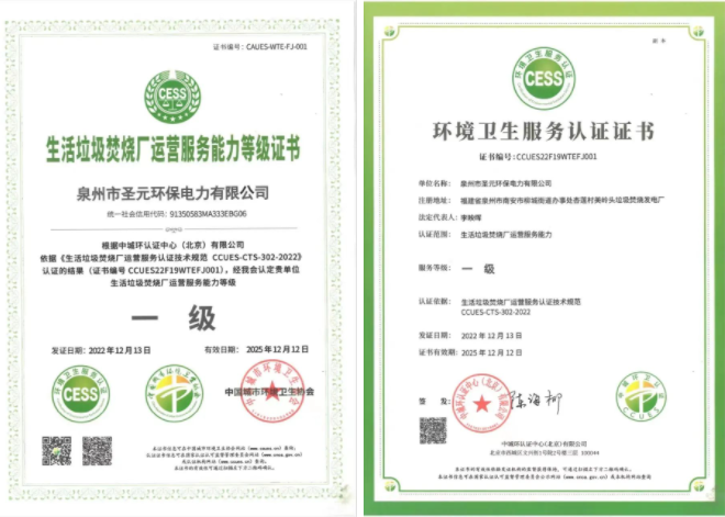 近日,泉州市太阳成集团tyc33455cc电力有限公司(以下简称“泉州太阳成集团tyc33455cc”)获得中城环认证中心颁发的生活垃圾焚烧厂运营服务能力认证证书(服务等级:一级),中国城市环境卫生协会对该认证结果予以认定。此举表明泉州太阳成集团tyc33455cc在服务管理、服务特性、服务能力等方面均为垃圾焚烧电厂中的佼佼者。