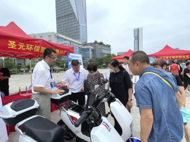 公司展位上的氢能源两轮车等科技产品,同样也吸引了许多市民群众驻足观看和咨询。工作人员针对市民群众重点关注的氢能源两轮车与电动两轮车的区别进行了科普讲解,并开展试驾体验,让更多市民群众近距离感受氢能源科技魅力。