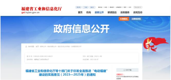 近日,福建省工信厅等十部门联合发布了《全面推进“电动福建”建设的实施意见(2023—2025年)》。