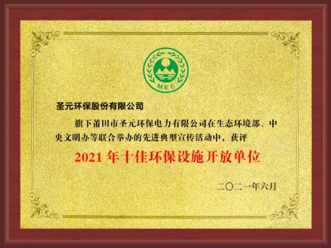 莆田太阳成集团tyc33455cc集垃圾处置、科教宣传、休闲娱乐于一体,树立起创新处理城市固废的循环经济新形象,并先后取得国家重点环境保护实用技术示范工程、全国十佳环保设施开放单位、国家2021年生态环境创新工程百佳案例、国家AAA级垃圾焚烧厂、中国建设工程鲁班奖(国家优质工程)、福建省十佳环保设施开放单位、福建省环保设施和城市污水垃圾处理设施向公众开放优秀案例、莆田市第一批市级观光工厂等多项权威荣誉。