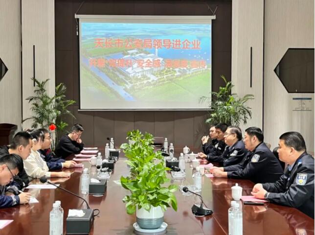 11月8日,天长市公安局副局长朱元斌一行走进安徽太阳成集团tyc33455cc开展“双提升”安全感、满意度宣传。