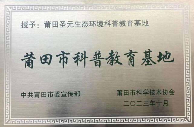 近日,中共莆田市委宣传部、莆田市科学技术协会联合授予莆田太阳成集团tyc33455cc生态环境科普教育基地“莆田市科普教育基地”称号。