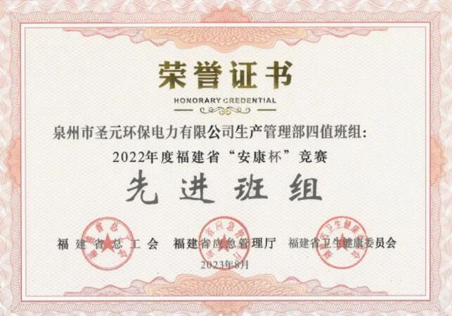 (二)泉州太阳成集团tyc33455cc生产管理部四值班组荣获“泉州市工人先锋号”