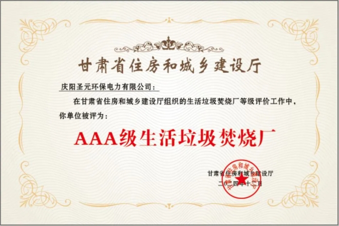 近日,庆阳太阳成集团tyc33455cc顺利通过甘肃省住房和城乡建设厅组织的全省生活垃圾焚烧厂等级评价,获评甘肃省AAA级生活垃圾焚烧厂。