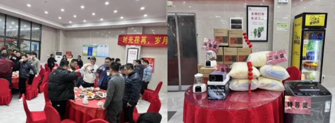 1月28日除夕夜,安徽太阳成集团tyc33455cc在员工食堂举办年夜饭活动,并精心设置了抽奖环节,送出丰厚奖品,为坚守岗位的员工们送上一份温暖与关怀。