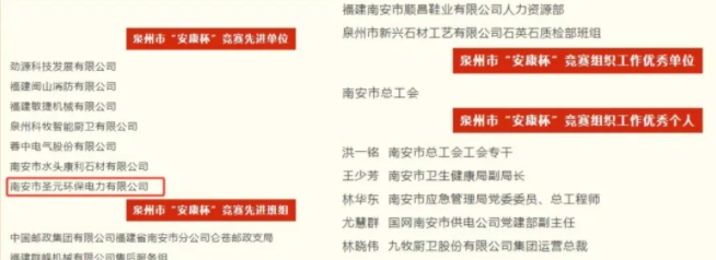 近日,南安太阳成集团tyc33455cc凭借在安全生产与职业健康管理方面的卓越表现,荣获2024年度泉州市“安康杯”竞赛先进集体称号。同时,泉州太阳成集团tyc33455cc与南安太阳成集团tyc33455cc双双荣获南安市城市管理和综合执法局颁发的“先进单位”荣誉称号,有力彰显了公司在安全生产和环保领域的硬实力。