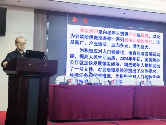 在会议第二议程系列讲座环节,协会名誉会长、中国老年保健协会会长闫青春作《适应人口老龄化需求,加快推动银发经济发展》的主题演讲,重点阐释我国银发经济面临的形势和任务、社会环境和政策保障等方面,鼓励企业抓住机遇,积极创新,为老年人提供更加贴心、周到的产品和服务,共同推动银发经济的健康发展。
