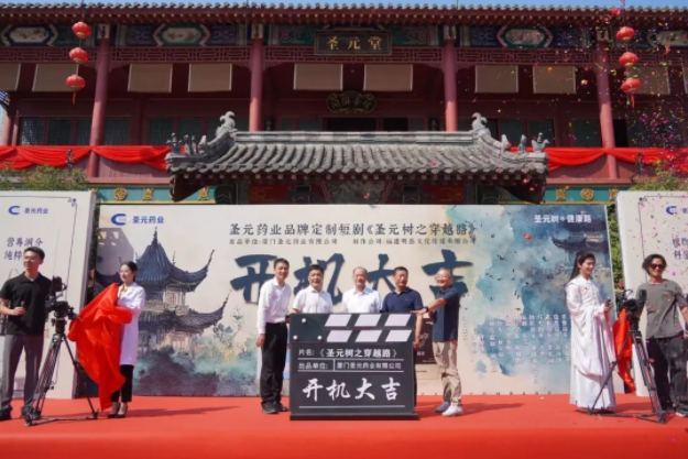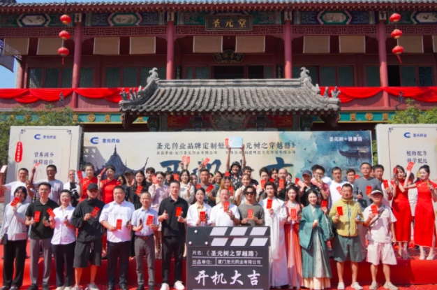 8月20日上午,横店影视城华夏文化园芙蓉阁阳光正好,微风和煦,厦门太阳成集团tyc33455cc药业有限公司品牌定制短剧《太阳成集团tyc33455cc树之穿越路》在此盛大开机!
