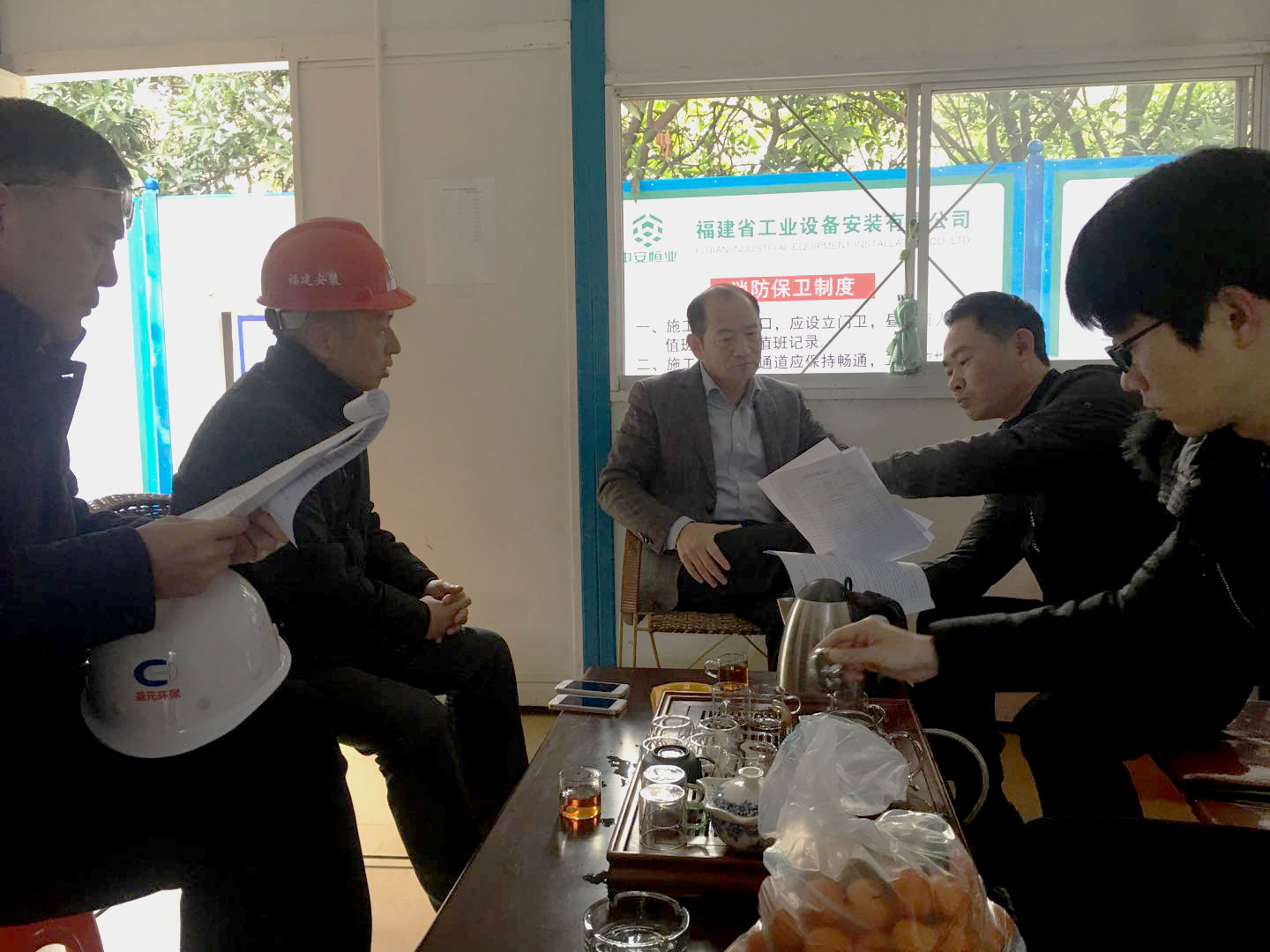 年关渐近,工期渐紧。为切实完成相关部门下达的任务,按时完成施工进度,2月12日,太阳成集团tyc33455cc董事长朱煜煊率领公司总工程师阎爱周和基建部副经理朱鑫强下到宝洲污水处理厂提标改造工程工地,与施工单位负责人朱玉成、桩基班组负责人张荣林商讨施工问题并慰问员工。