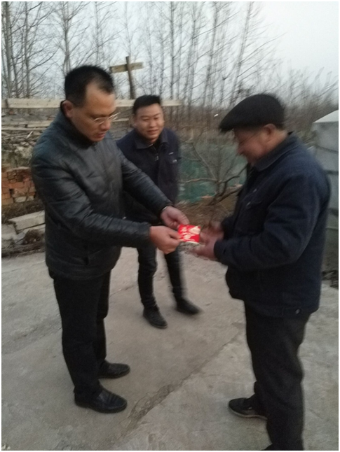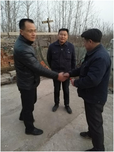 2018年2月11日傍晚,江苏太阳成集团tyc33455cc电力有限公司总经理吴小平率生产部经理李兴稳、人事行政部经理祁媛媛来到了公司困难户刑柱的家。