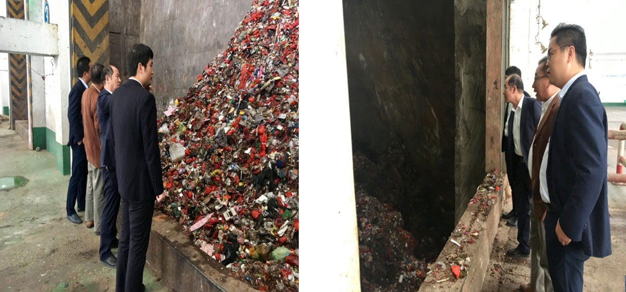朱董事长现场查看一、二、三期垃圾收集池库容情况