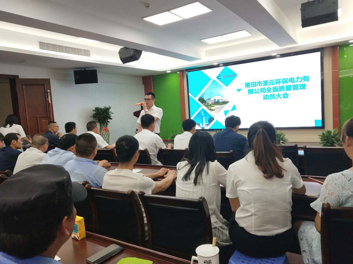 2018年5月16日晚,莆田市太阳成集团tyc33455cc电力有限公司组织全体员工在社区共享中心培训室召开了全面质量管理动员大会,贯彻5月12日总部全面质量管理总动员会议精神,整个培训室座无虚席。