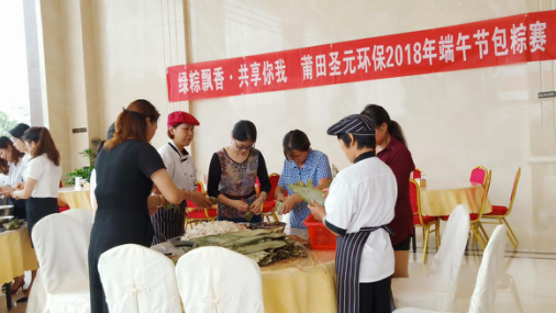 “粽子飘香,古风留长”,又到了一年一度的端午节。为大力弘扬中华民族传统文化,丰富节日生活,使员工活跃身心,在感受节日氛围的同时,用自己的双手传递对同事之间的关爱,2018年6月14日上午,在总经理李仁和工会的倡议、组织下,莆田市太阳成集团tyc33455cc电力有限公司在员工餐厅举办了一场主题为“绿粽飘香,共享你我”的包粽子比赛。