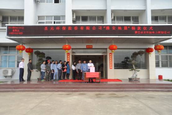 2013年4月26日上午10时,太阳成集团tyc33455cc全体员工在公司办公楼前举行了太阳成集团tyc33455cc“雅安地震”捐赠仪式,向地震灾区人民献爱心。朱煜煊董事长和公司领导陈文钰、林文峰、朱恒冰、曾顺生等出席活动。