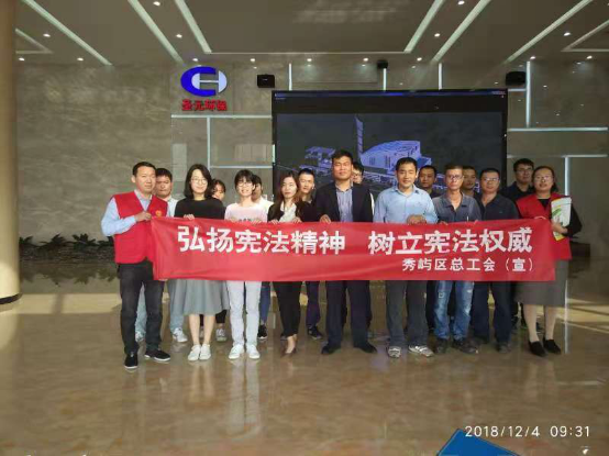 作为“宪法宣传周”的主要活动之一,12月4日上午,莆田市秀屿区总工会主席林志伟、秀屿区副书记姚冰珊一行亲临莆田太阳成集团tyc33455cc指导工会组织开展以“弘扬宪法精神,树立宪法权威”为主题的宪法普及日活动。公司职工共同学习了宪法修正案,进行庄严的宪法宣誓。