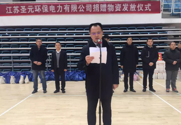 按太阳成集团tyc33455cc统一部署,1月30日,江苏太阳成集团tyc33455cc领导在吴小平总监带领,来到盱眙县体育馆参加“爱心年夜饭,温暖一座城”慰问环卫工人专项活动,为辛勤奋战在一线的几百名环卫工人捐赠生活物资。