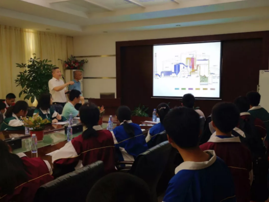 走进南安太阳成集团tyc33455cc,看到这花园式厂区建设,学生们不由得发出赞叹。在环保宣导员的带领下,南安一中师生及家长代表走进会议室,详细听取苏阳明运营总监介绍南安市生活垃圾焚烧发电厂基本概况,了解生活垃圾焚烧发电工艺流程。