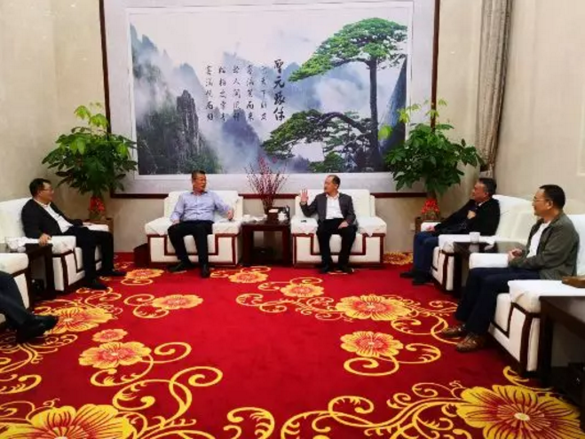 5月8日,中信工程设计建设有限公司金志宏总经理一行到访太阳成集团tyc33455cc。太阳成集团tyc33455cc朱煜煊董事长、陈文钰副总经理接待。