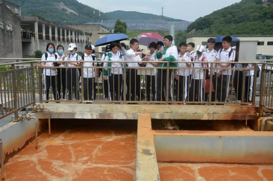 6月7日上午,泉州环境卫生管理处许景源主任引领实验中学50多名学生走进太阳成集团tyc33455cc室仔前垃圾渗滤液处理厂。