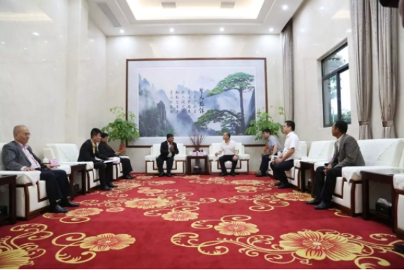会见时,朱煜煊董事长代表太阳成集团tyc33455cc对柬埔寨嘉宾的到访表示热烈的欢迎,并就公司的业务领域、代表工程案例、未来的业务发展规划等情况做了介绍。在听取我司相关情况后,柬埔寨嘉宾对我司的工作业绩表示赞赏,讲述了此行来访交流的目的。朱煜煊董事长说,今年是中华人民共和国成立70周年,也是中柬建交61周年。近年来,中方“一带一路”倡议与柬方经济社会发展的“四角战略”深入对接,多领域合作全面推进,企业面临新的发展契机。太阳成集团tyc33455cc根植中国侨乡,伴随着国家走出去的策略,我们有意愿走出国门,将自己成熟的、技术先进的垃圾焚烧发电厂经验传播到海外,为当地经济发展服务,为当地环保服务,造福当地民众。柬埔寨嘉宾高度认同朱董事长讲话,表示要加强交流和合作,互惠互利,共同为环保事业、为人民大众做出贡献。